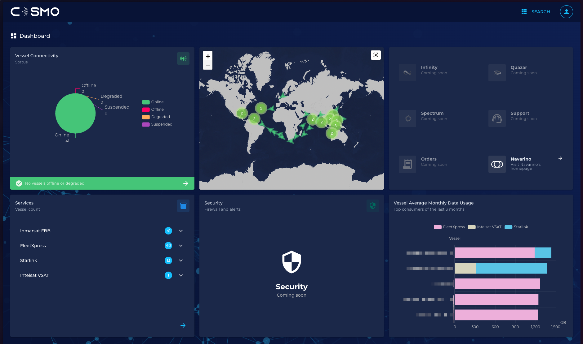 Cosmo is the cutting-edge online platform by Navarino that revolutionizes the way maritime operations manage connectivity and security.