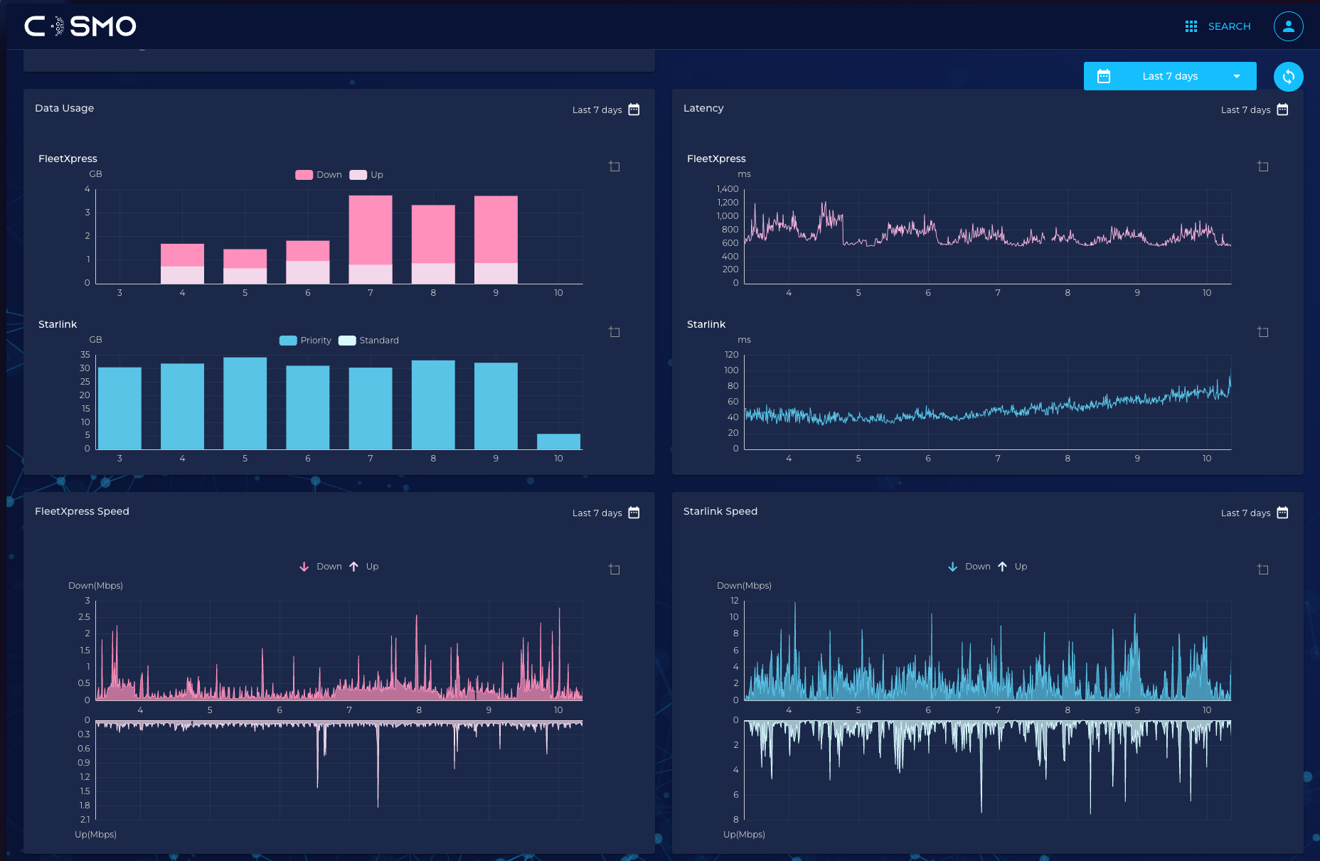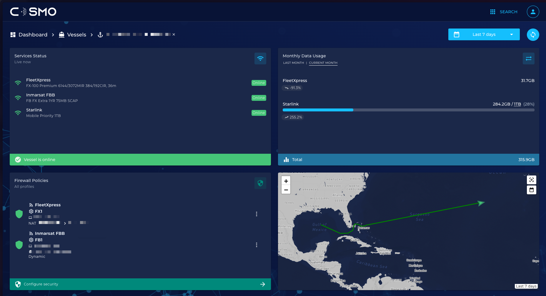 Comprehensive, real-time insights into vessel connectivity status, quality, and latency metrics