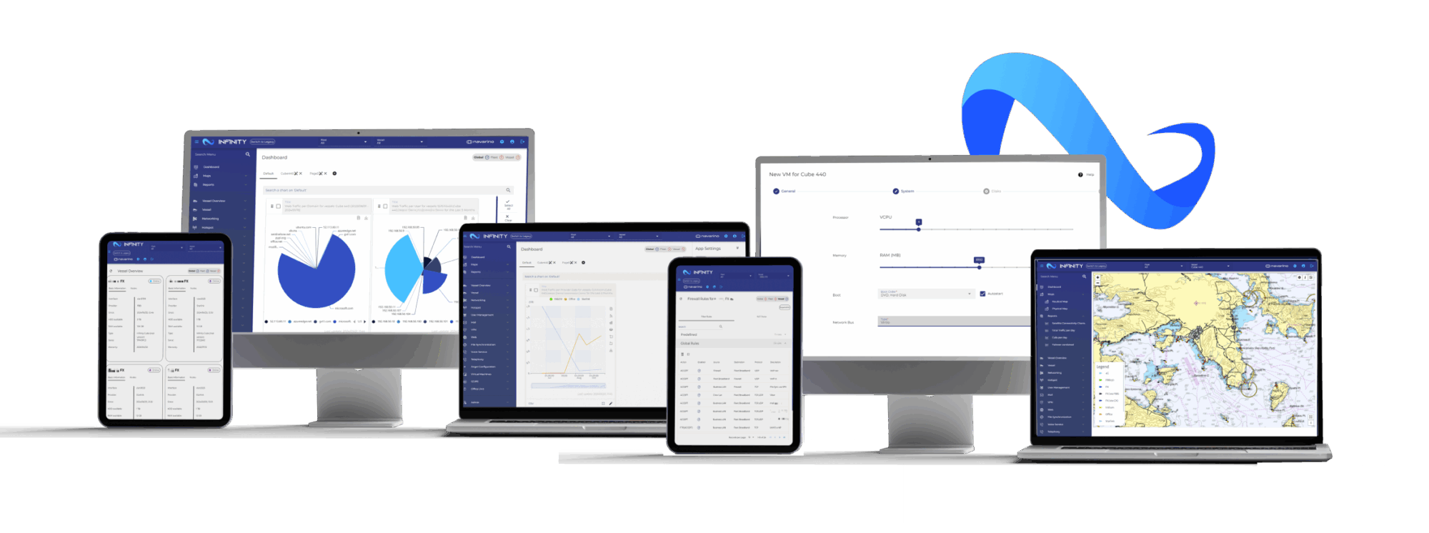 Infinity is the most advanced maritime bandwidth network management and optimization solution that can be used on ships equipped with any type of satellite communications systems including, but not limited to, Starlink, Fleet Broadband or VSAT systems (Ka, Ku or C‐band).